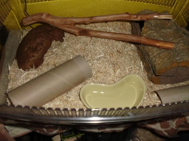 Posted - 10/07/2013 : 23:44:22 Oh boy....   Getting the log with holes tomorrow, and putting the heat mat on, the stat and matt are behind the banner. The cold side hide is a medium hide that i took from kellogs as she didnt like it, so it looks massive compared to the small hide! Someone on here said that the ivy freaked their hoggie out, so i didnt put it in