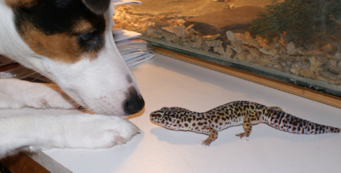 Looks like your hound is attempting a bit of Gecko herding  Maybe they will move on to snake sniffing/retriving next |